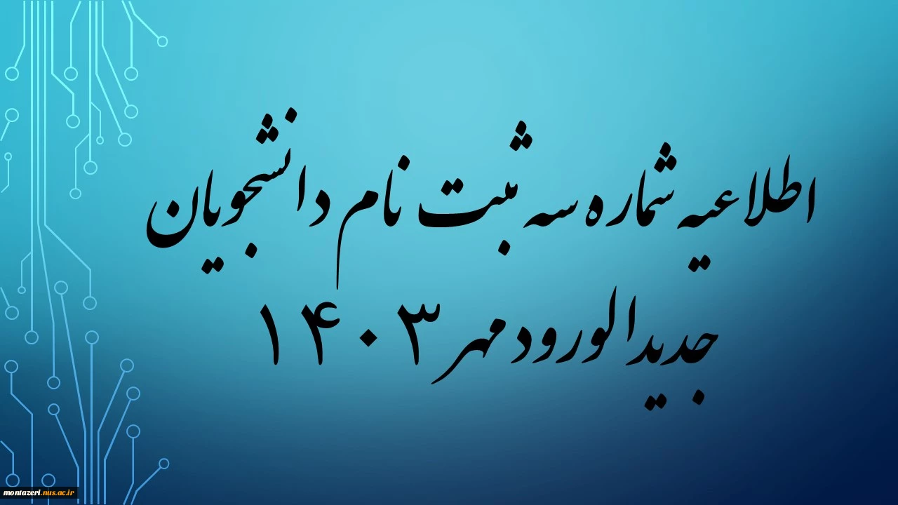 اطلاعیه شماره 3 ثبت نام پذیرفته شدگان سال تحصیلی 1404-1403 (ویژه مقطع کاردانی ورودی مهر) )