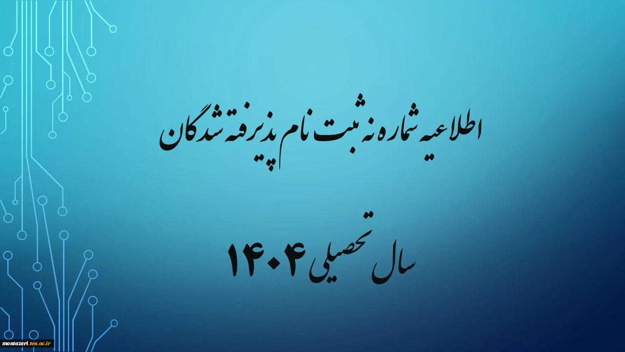 امتیاز دهید : اطلاعیه شماره نه ثبت نام پذیرفته شدگان سال تحصیلی 1405-1404 (ویژه مقطع کارشناسی پیوسته ورودی بهمن) 2 چهارشنبه 23 مهر 1404 ساعت 10:12