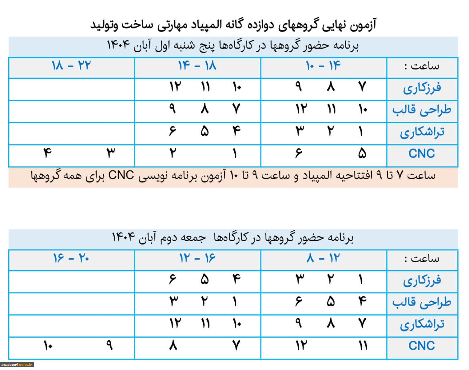 امتیاز دهید : اعلام جزئیات مرحله نهایی مسابقات ساخت و تولید سومین المپیاد مهارتی دانشجویان سراسر کشور 3 سهشنبه 29 مهر 1404 ساعت 11:07