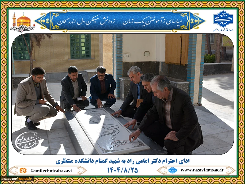 امتیاز دهید : حضور دکتر امامیراد بر مزار شهید گمنام دانشکده منتظری و ادای احترام به مقام شهدا 2 یکشنبه 25 آبان 1404 ساعت 15:38