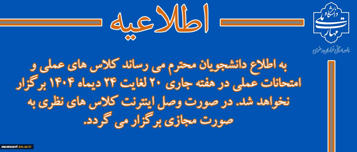 اطلاعیه لغو کلاس و امتحانات عملی 2