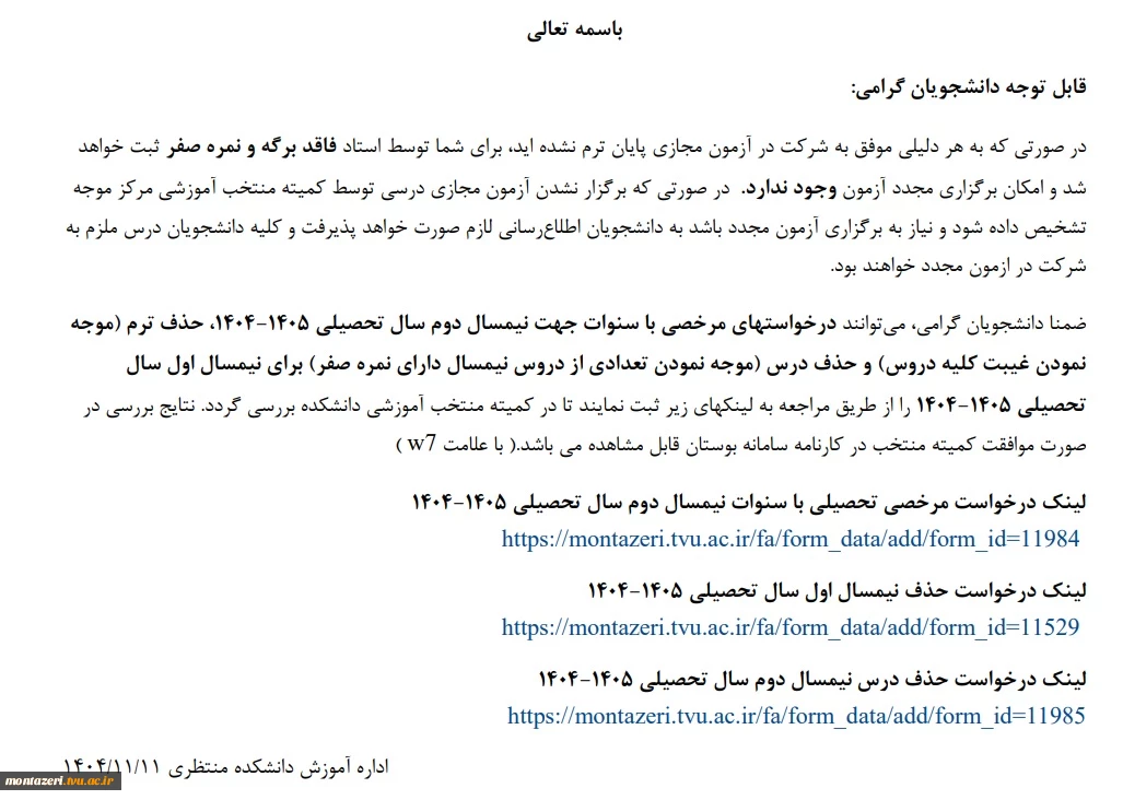 درخواست مرخصی، حذف نیمسال، حذف درس 2